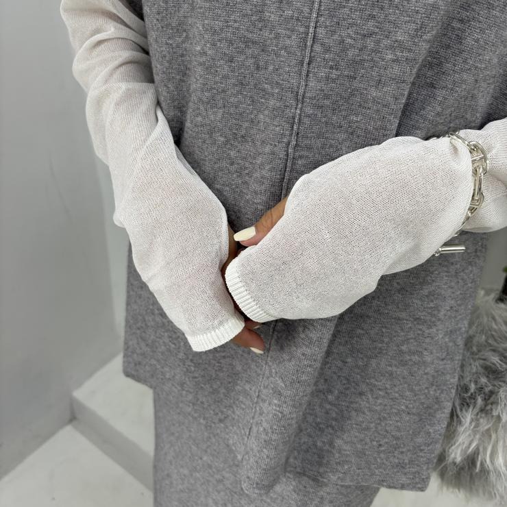 サムホールに指を通すと袖口がくしゅっとなる長めの袖丈になっています。