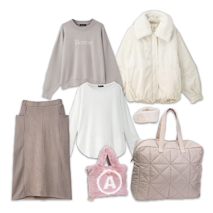 ニットの質感も柔らかくベーシックな形なので使いやすい。