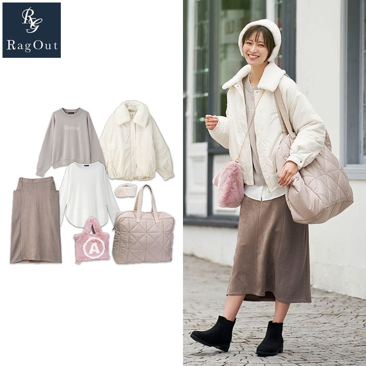 ファー素材でピンクカラーと大き目なロゴがあるのが特徴。