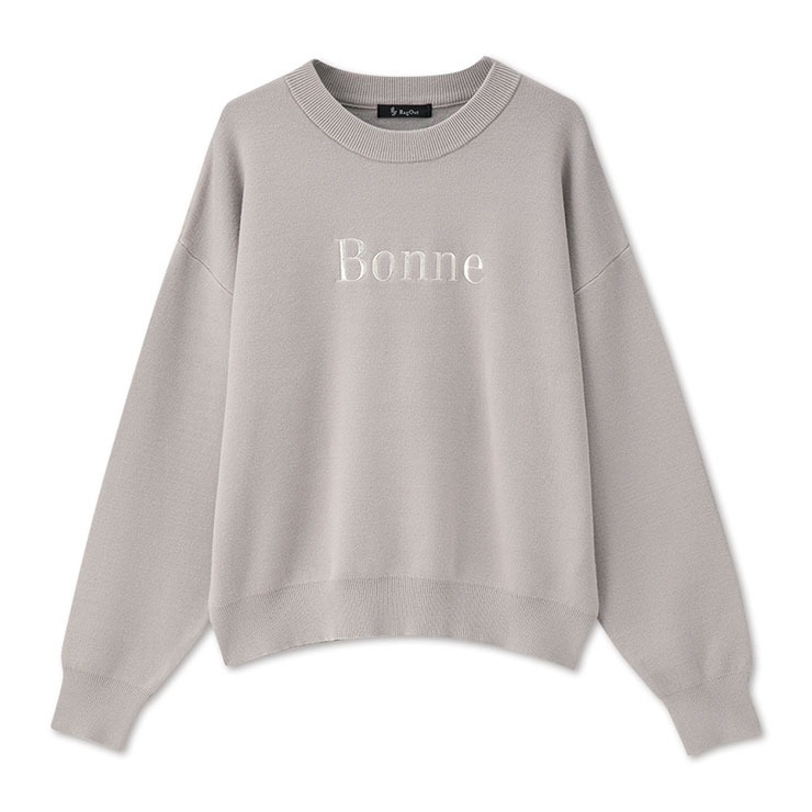 同色の刺繍ロゴがポイントのニットプルオーバー。