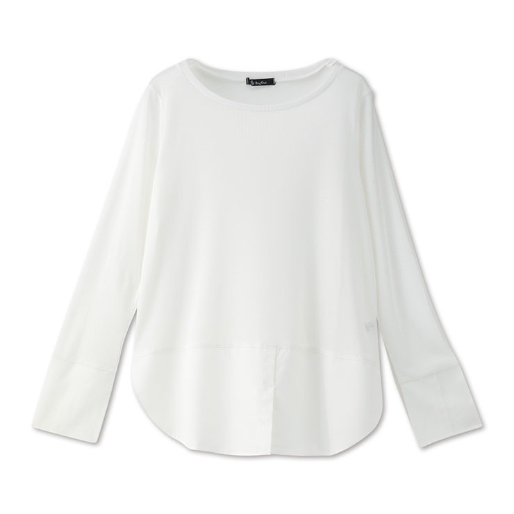 シアー素材のリブテレコを使用し、袖と裾をレイヤードで見せれるようにデザインを入れています。
