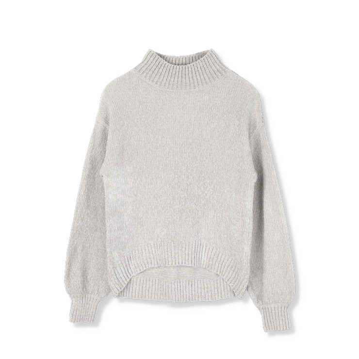 光沢感のあるベロアモール素材が肌触りのよいニットプルオーバー。