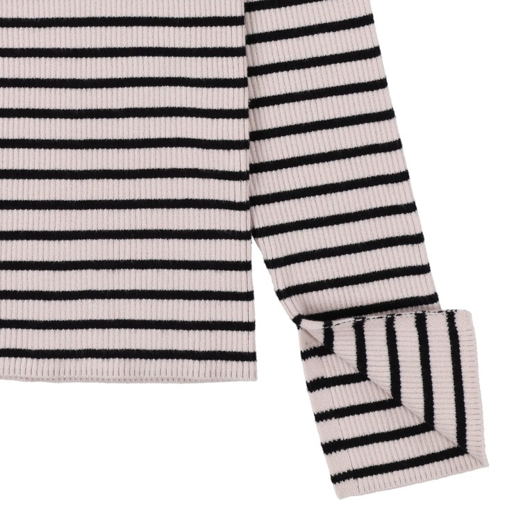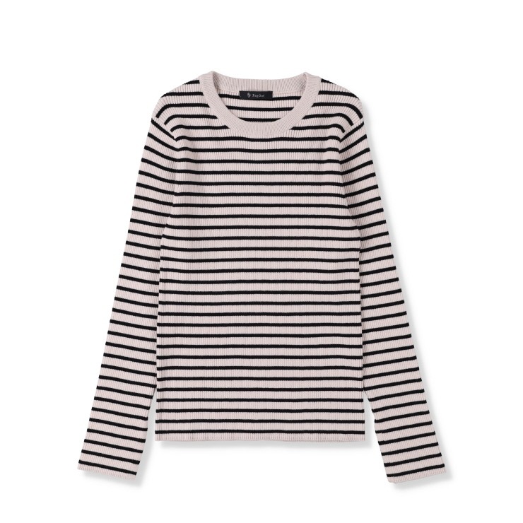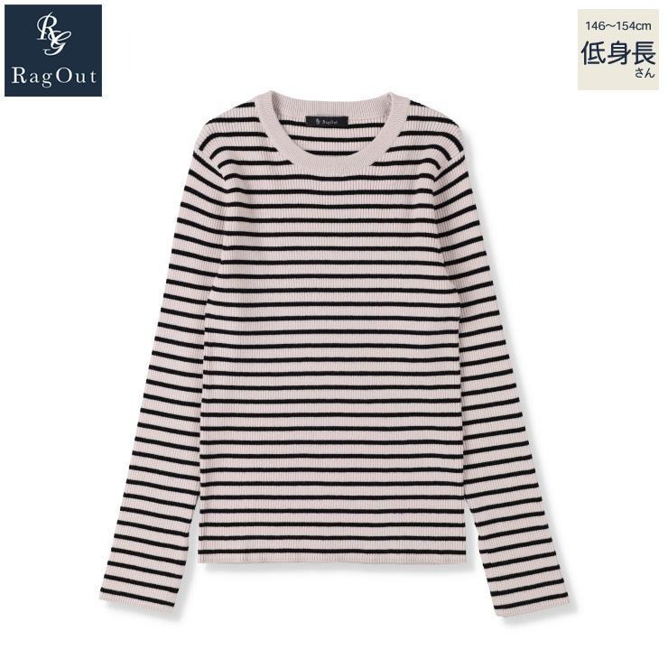 レディース【低身長】 クルーネックボーダーリブニットプルオーバー(RagOut)