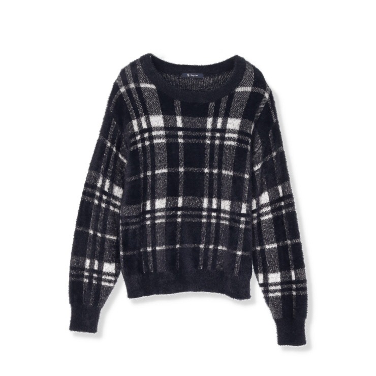 レディース チェック柄シャギーニットプルオーバー(RagOut) ブラック 213 ブラック 213