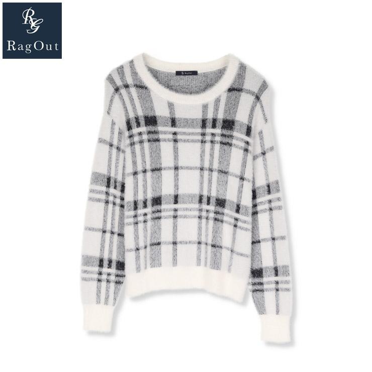 レディース チェック柄シャギーニットプルオーバー(RagOut) ホワイト 211 ホワイト 211