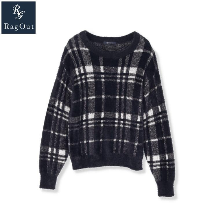 レディース チェック柄シャギーニットプルオーバー(RagOut)