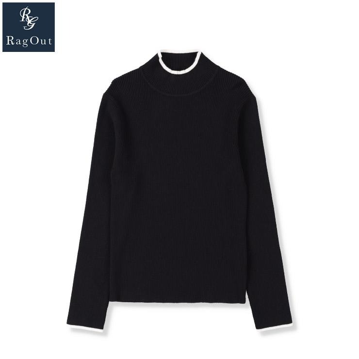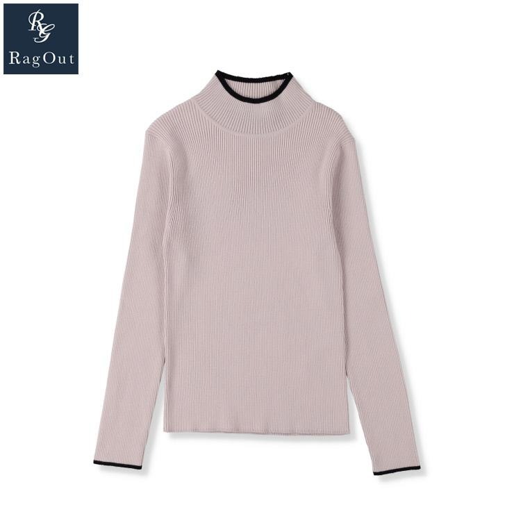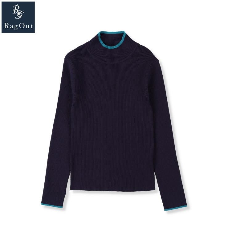 レディース ハイネック配色リブニットプルオーバー(RagOut)