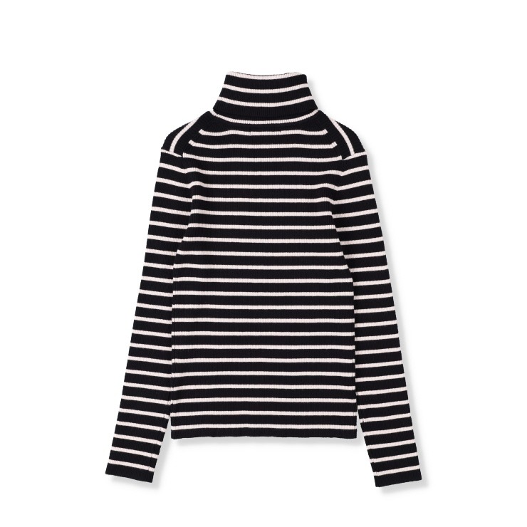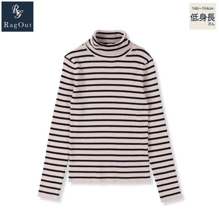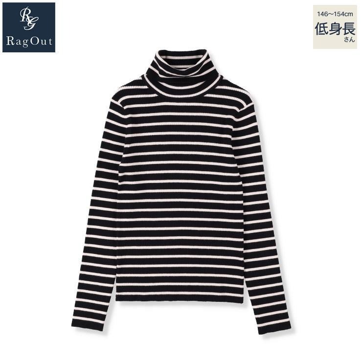 レディース【低身長】 タートルネックボーダーリブニットプルオーバー(RagOut)