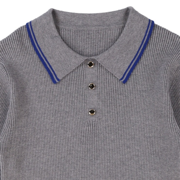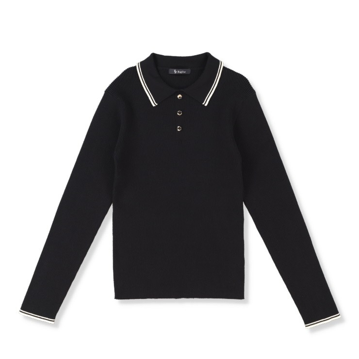 クラシックなポロシャツデザインのボタン付きの前立てときちんと感のある襟で、オフィスカジュアルにも対応しやすい上品な印象。