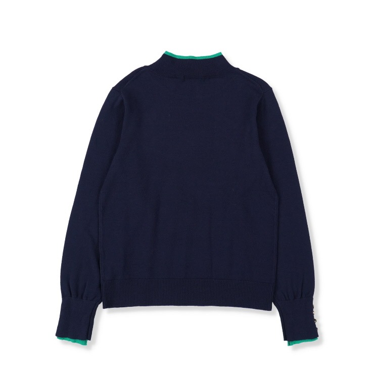 首元まで程よくカバーするハイネックで、きちんと感があり大人っぽい印象を演出します。