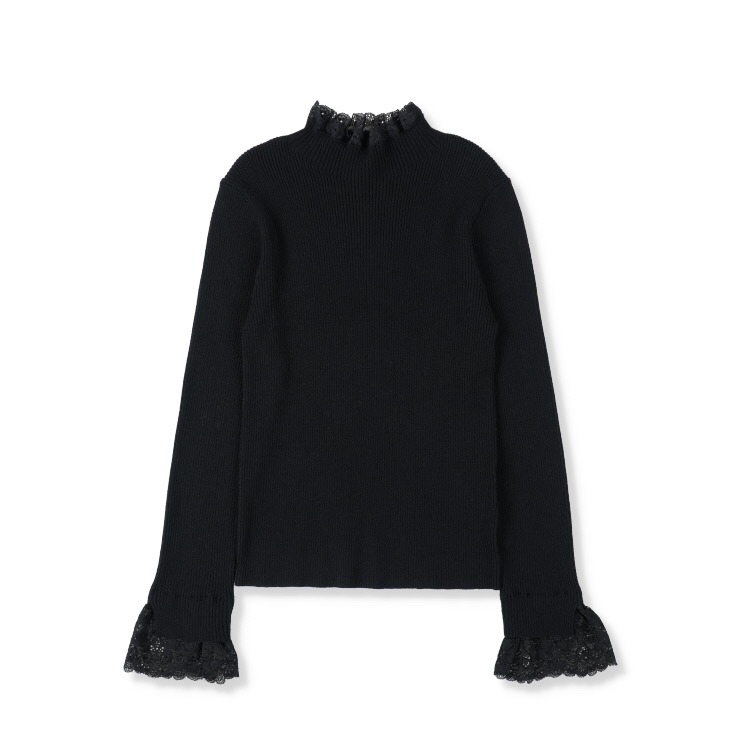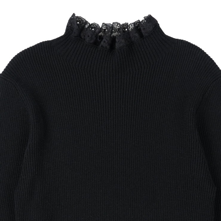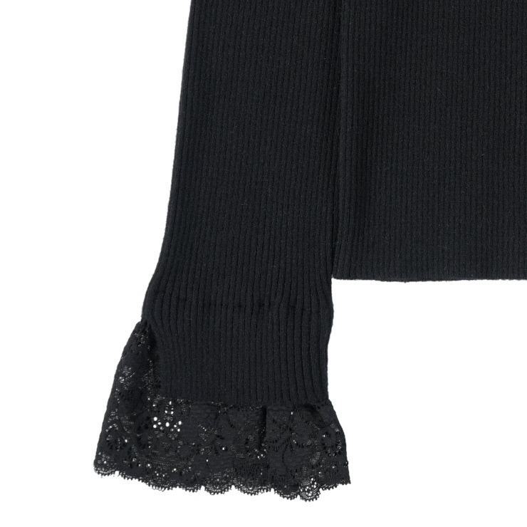 上品なレースがアクセントのリブニットプルオーバー。
