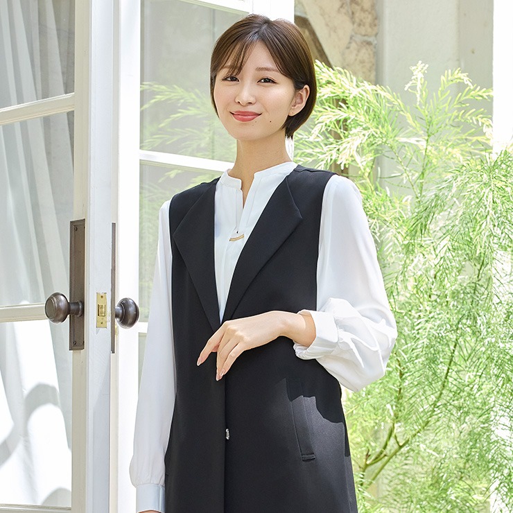フロントタックがポイントの細見え効果のあるブラウスです。