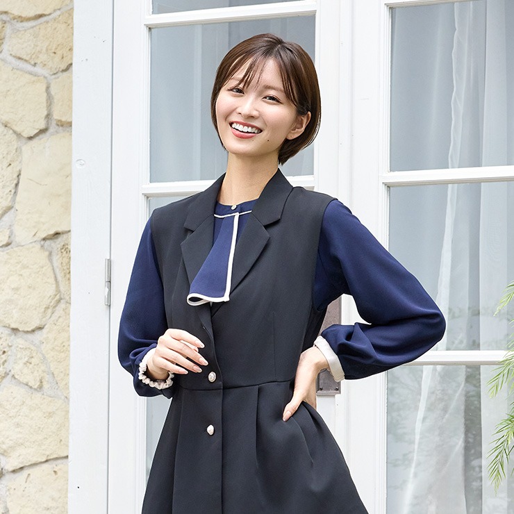 レディース 細見え美人配色ボウタイブラウス(RagOut)