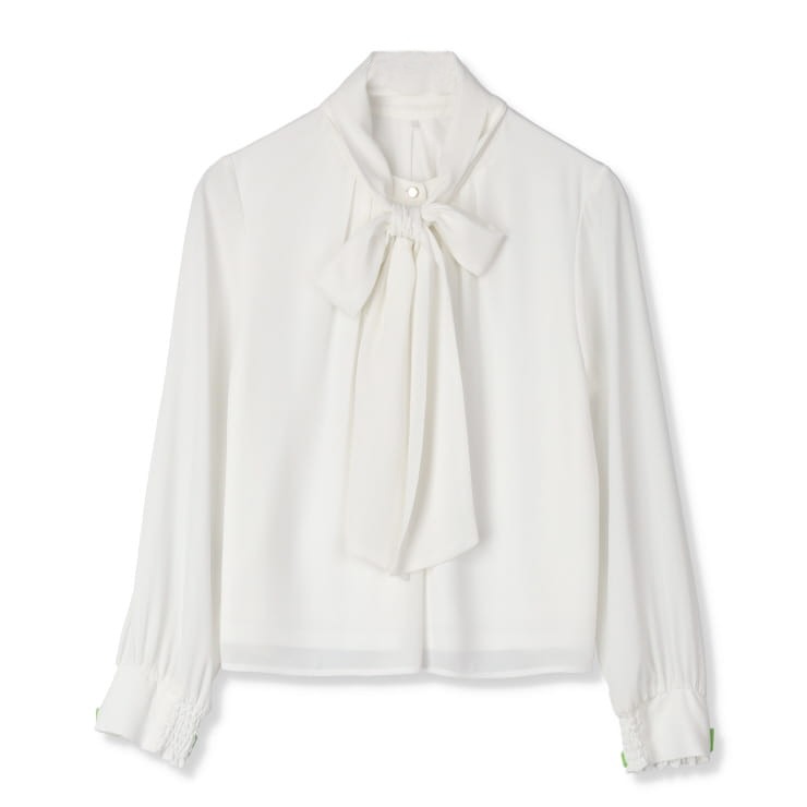 トレンドのボウタイは取り外し可能、シンプルなタックブラウスと2通り楽しめます。