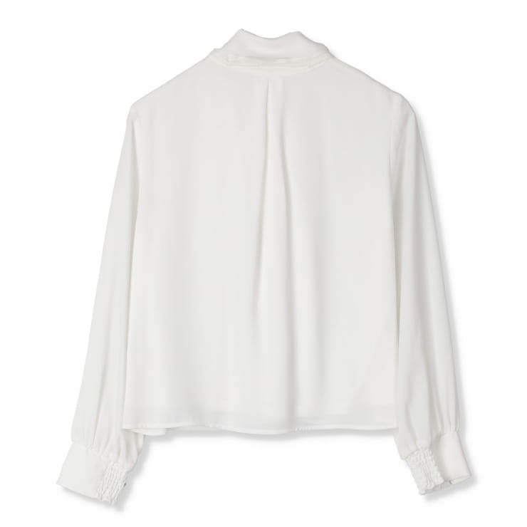 上品でとろみのあるシフォンジョーゼットで仕立てたボウタイブラウスです。