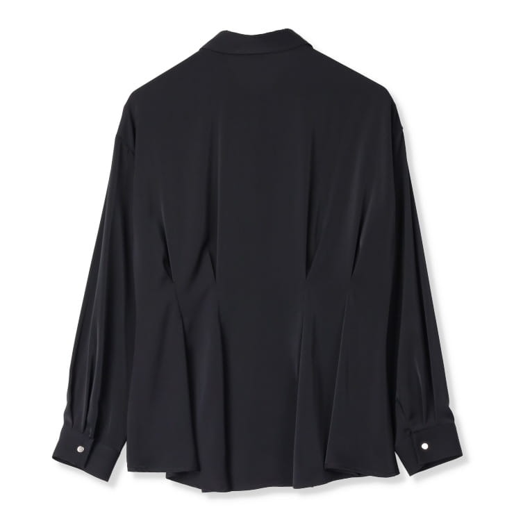 なめらかでやや光沢感のあるデシン素材で仕立てた襟付きブラウスです。