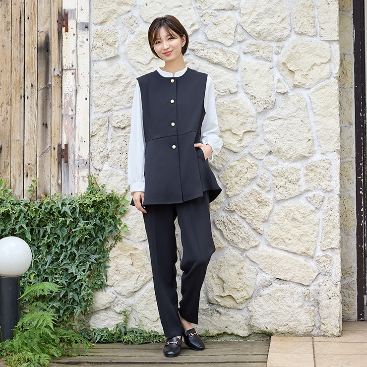 ウエスト切り替えのペプラムデザインが、気になる腰周りをさりげなくカバーしてくれて細見えを叶えます。