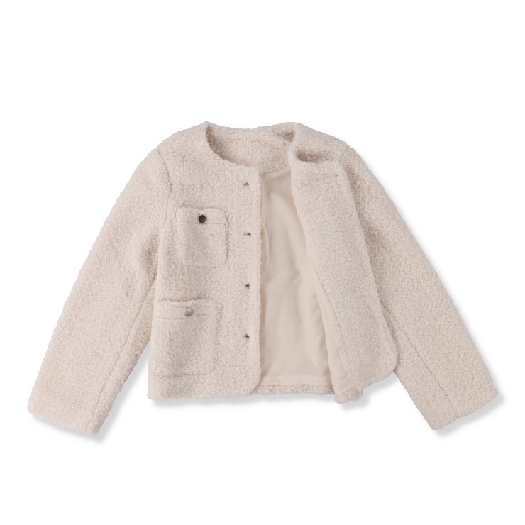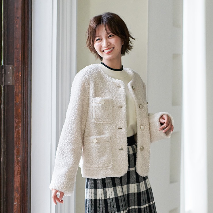 羽織るだけで上品に仕上がるノーカラージャケット。
