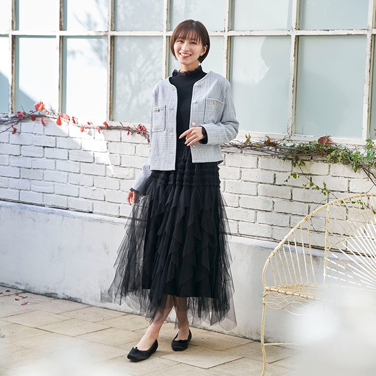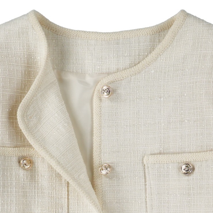 キラキラと上品に煌めくラメ入り生地を贅沢に使用したジャケット。