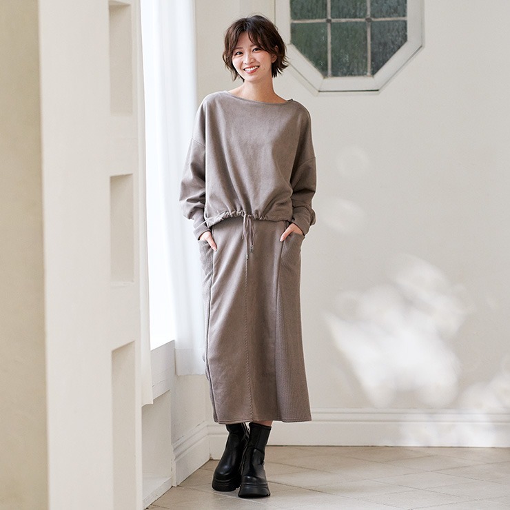 ソフトな微起毛素材と脇をニットリブで切り替えたペンシルスカートです。