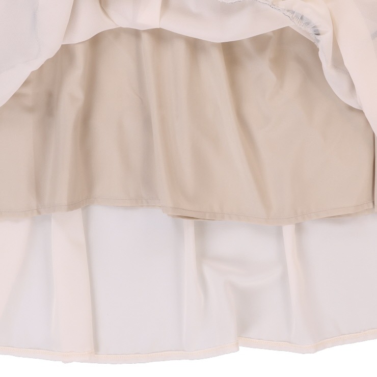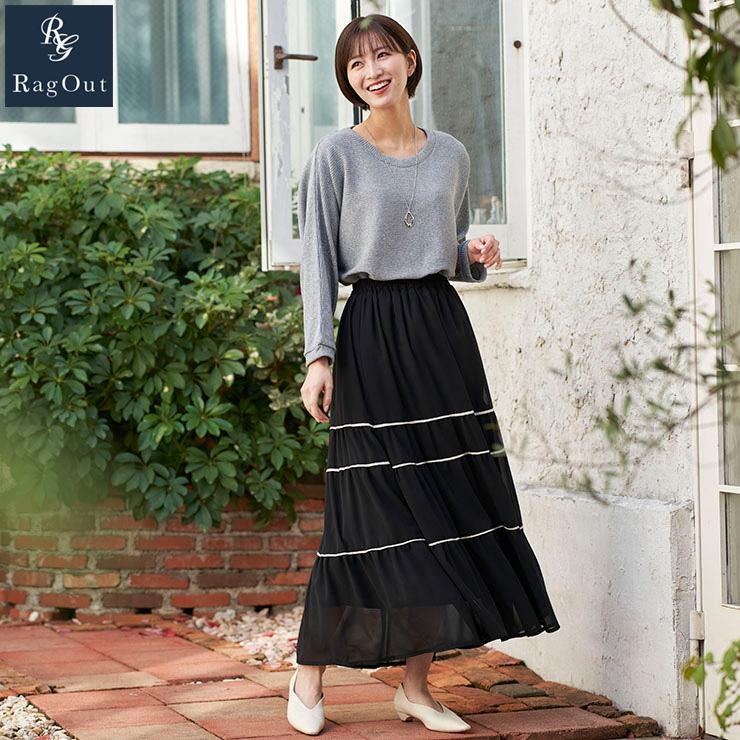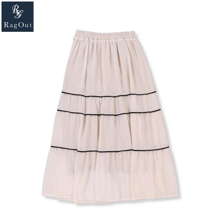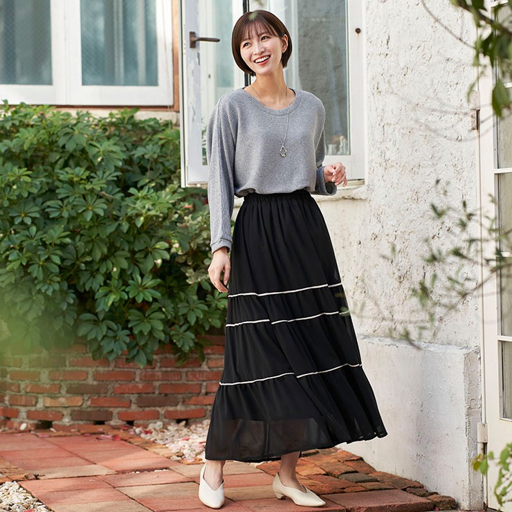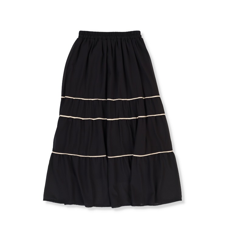 軽やかに揺れるやわらかなシフォン素材のライン入りティアードスカート。