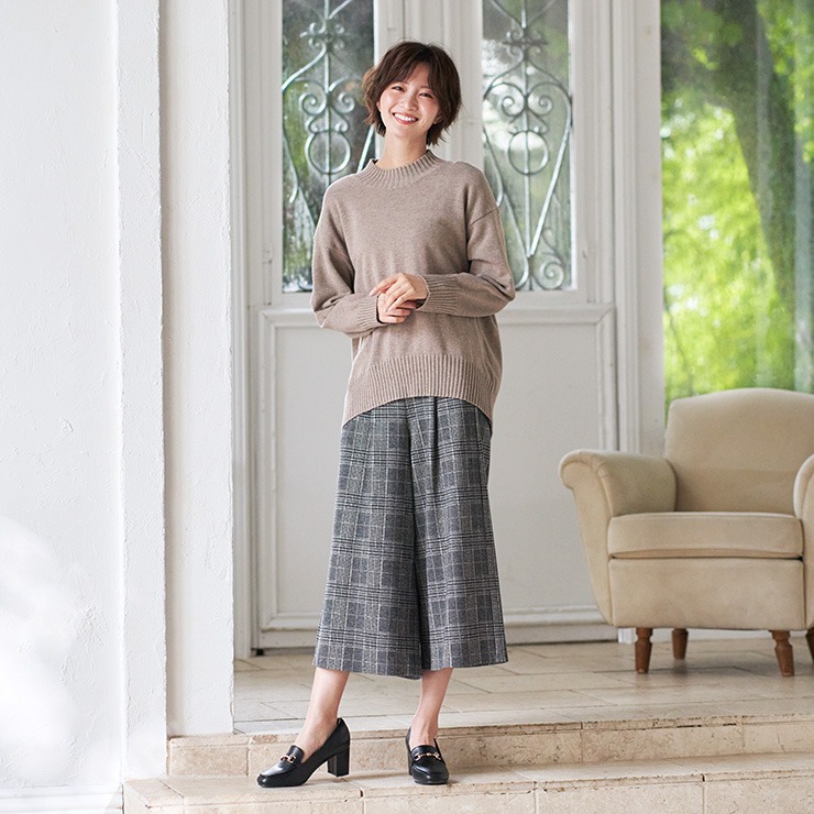 クラシックなチェック柄が落ち着いた印象の、柔らかな起毛ニット素材。