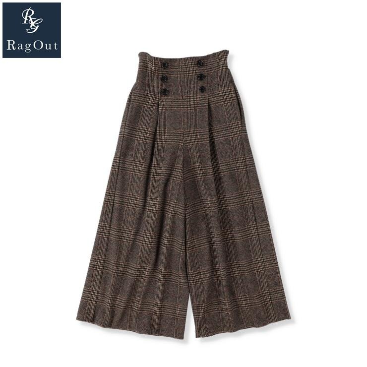 レディース チェック柄ボタン使いパンツ(RagOut)