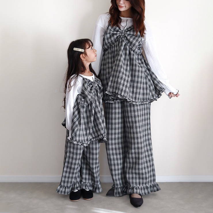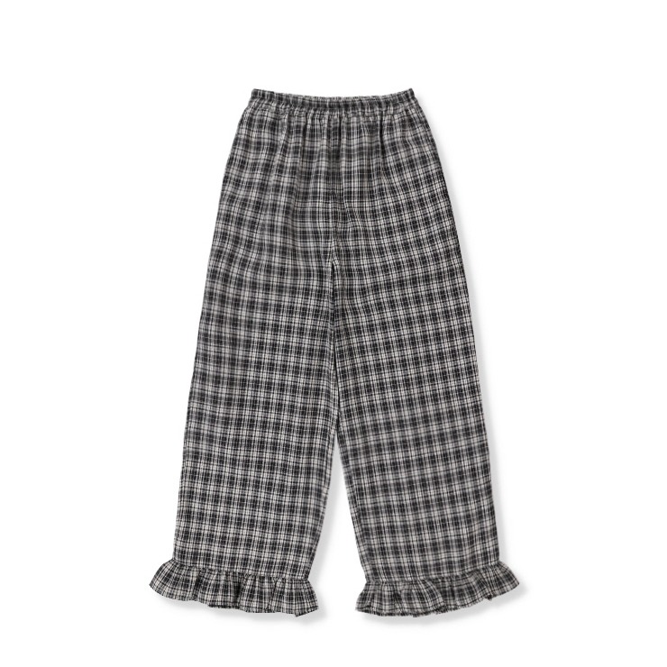 レディース 裾フリルチェック柄パンツ(mirror bae.)