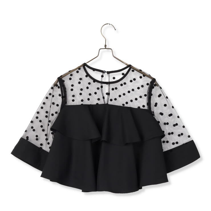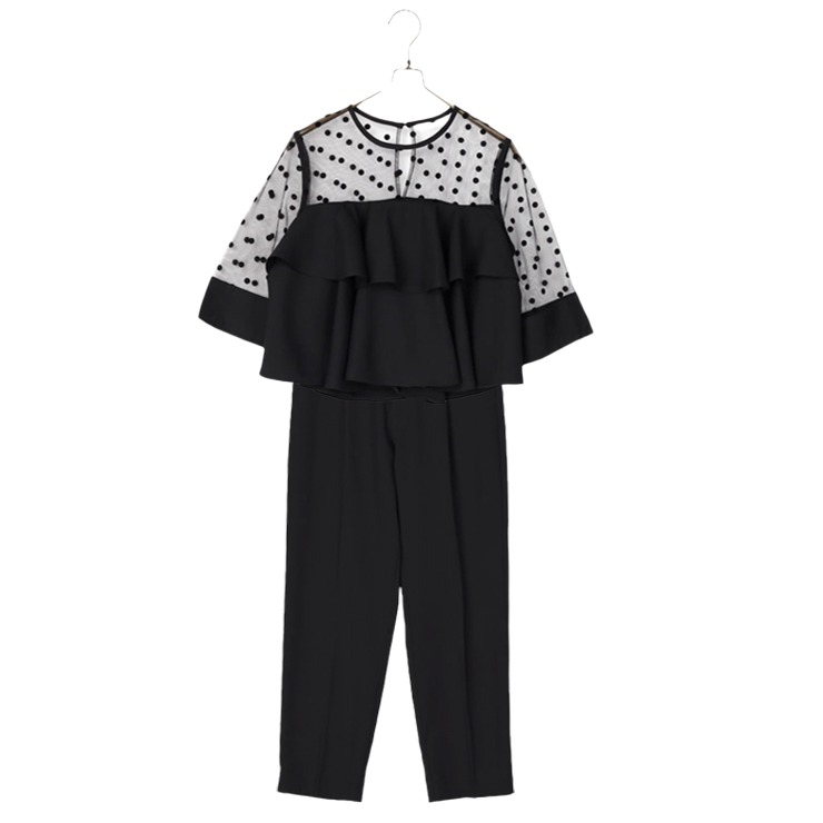 トップスにはドットチュール素材を使用し、パーティーシーンやお食事会にも大活躍。
