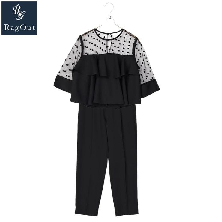 レディース ドットチュールブラウス+パンツセット(RagOut)