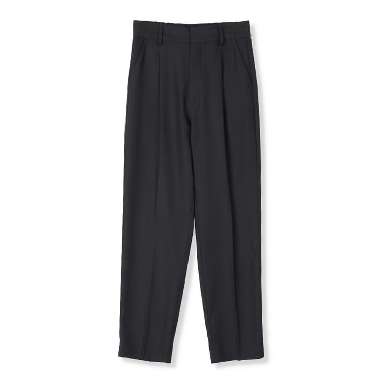 きれいなシルエットのテーパードパンツは、普段使いでも着用できる万能アイテムです。