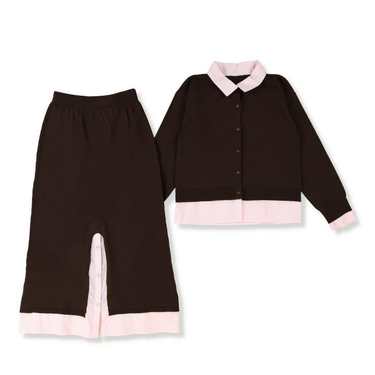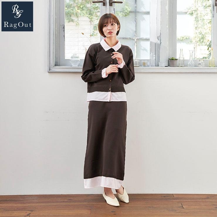 レディース 襟付ニットカーディガン+スカートセット(RagOut)