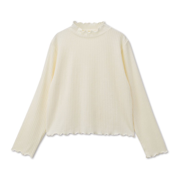 もちもち暖かリブ素材のハイネックプルオーバー。