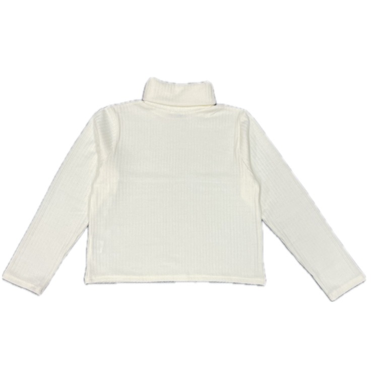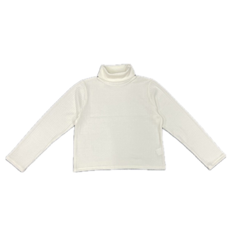もちもち暖かリブ素材のタートルネックプルオーバー。