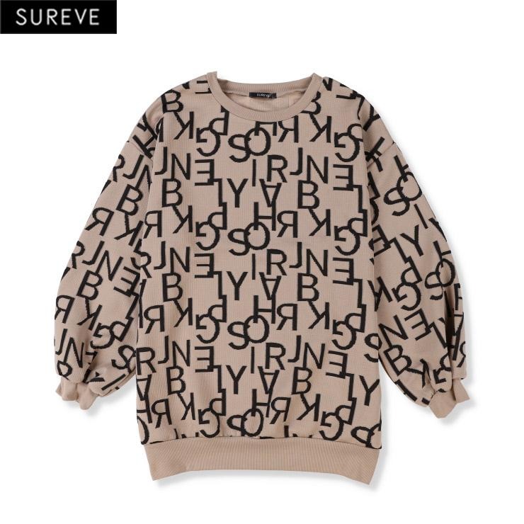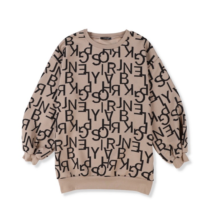 ジャガード織りで表現された英字柄が主役級なので、シンプルなボトムと合わせるだけでトレンド感のあるスタイリングが完成します。