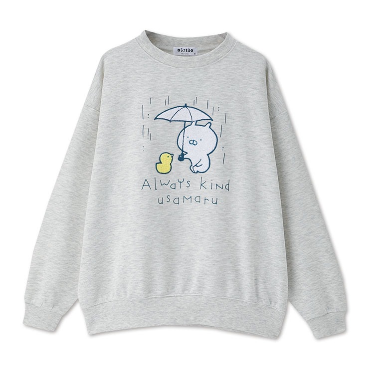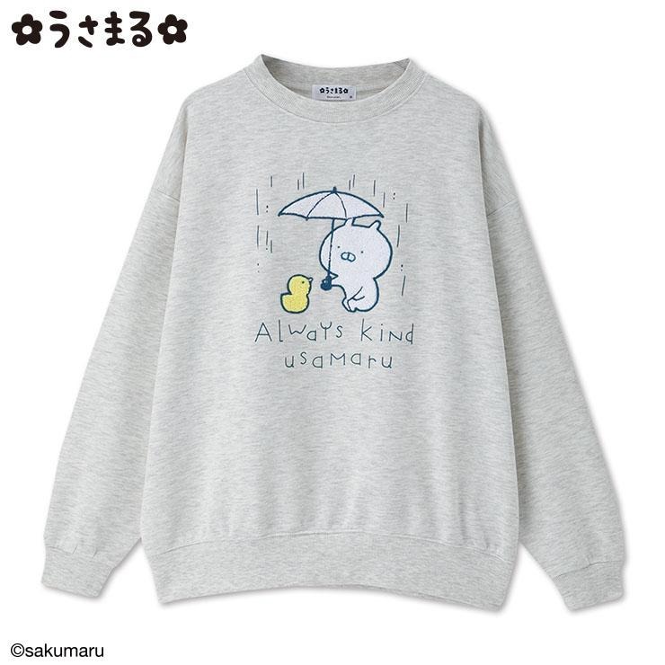 雨の日にうさまるがひよこを守る優しい雰囲気が特徴的です。