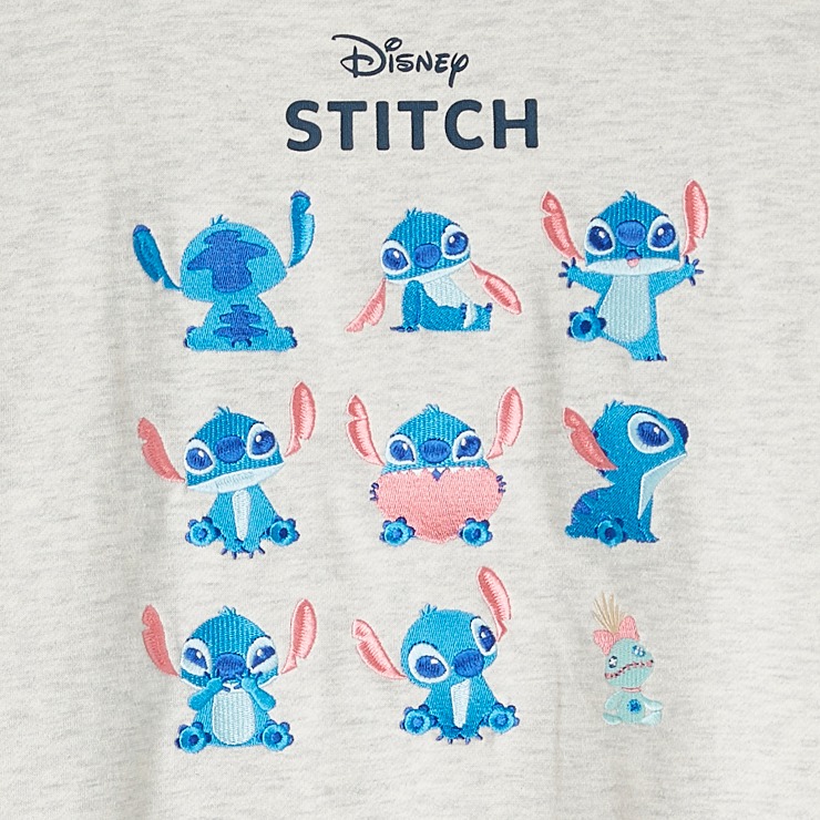 「リロ&スティッチ」スティッチの刺しゅうをした、リサイクル綿を使用したスウェットトレーナーです。