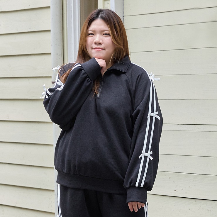 リボンラインがアクセントになった、ハーフジッププルオーバーです。