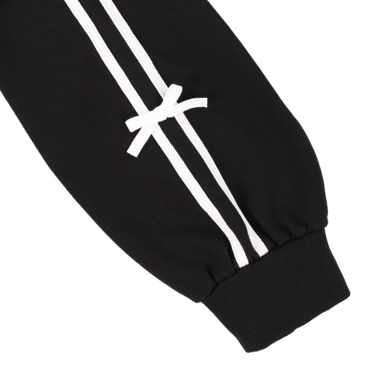 スポーティーさの中にサイドのリボンラインでガーリーさをプラスしたデザインは、1枚で主役になる可愛さです。
