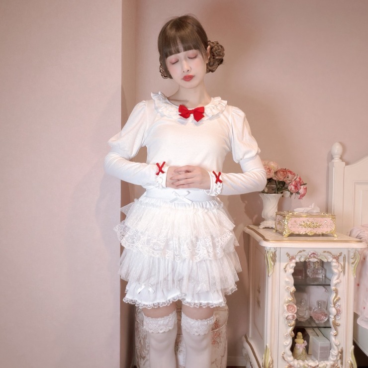 レース、フリル、りぼんの装飾を施した可愛いトップス!