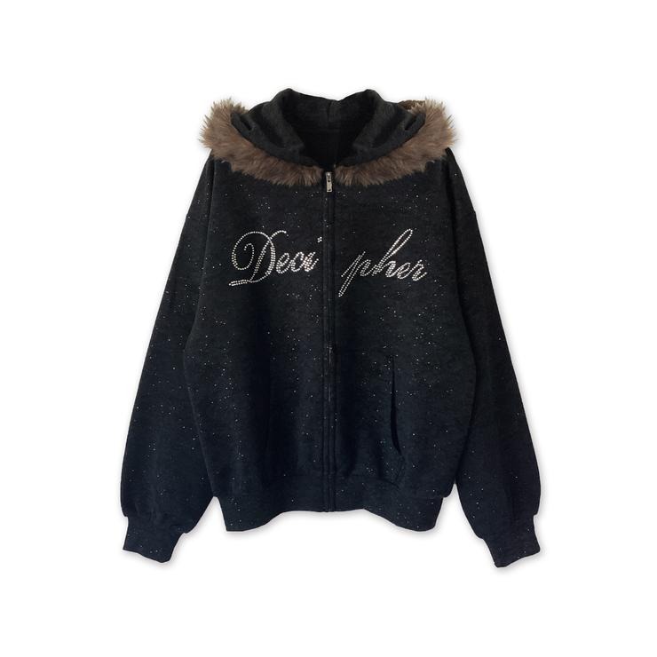 きらきら輝く細かなラメデザインと、ラメロゴが可愛いMizukiコラボのジップパーカ。