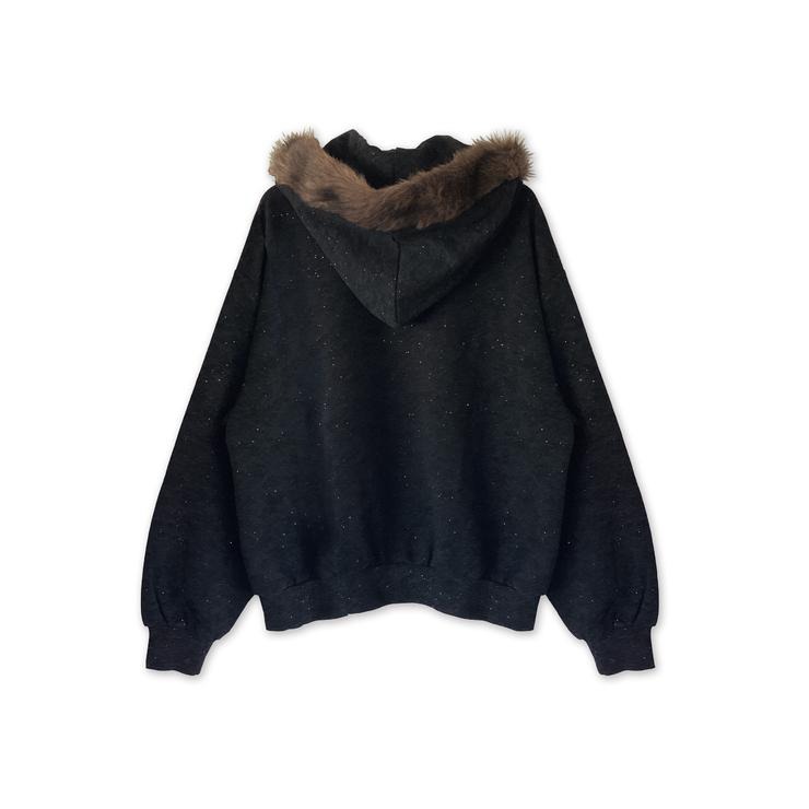フードまわりにふんわりとあしらったファーがカジュアルなパーカに大人っぽい華やかさをプラスしています。
