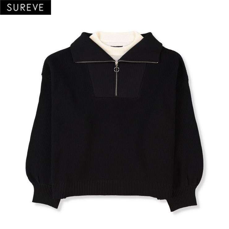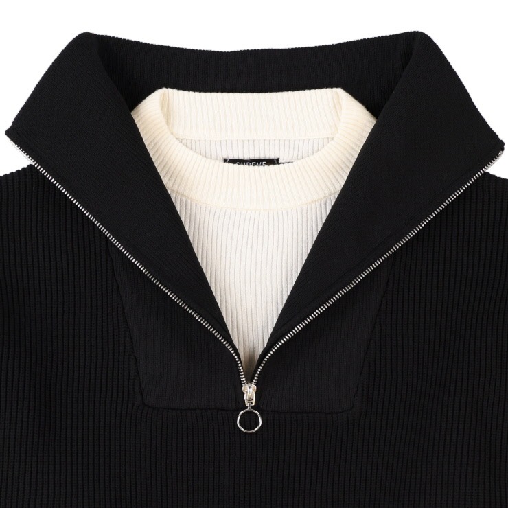 タートルネックを重ねたようなフェイクレイヤードデザインが、シンプルながらもおしゃれ見え◎