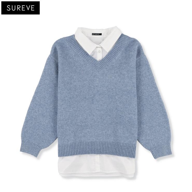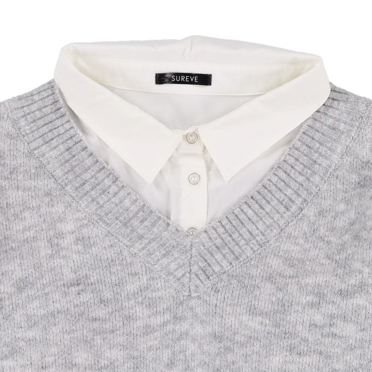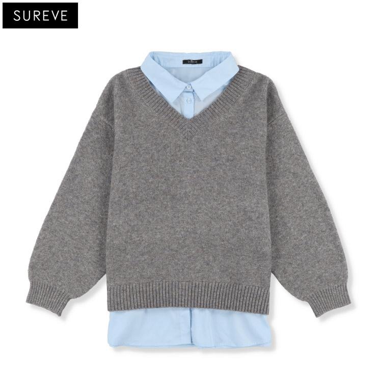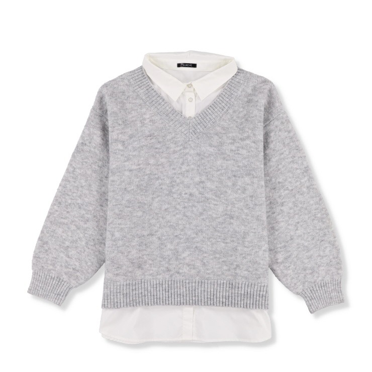シャツを重ね着したようなフェイクレイヤードニットプルオーバー。