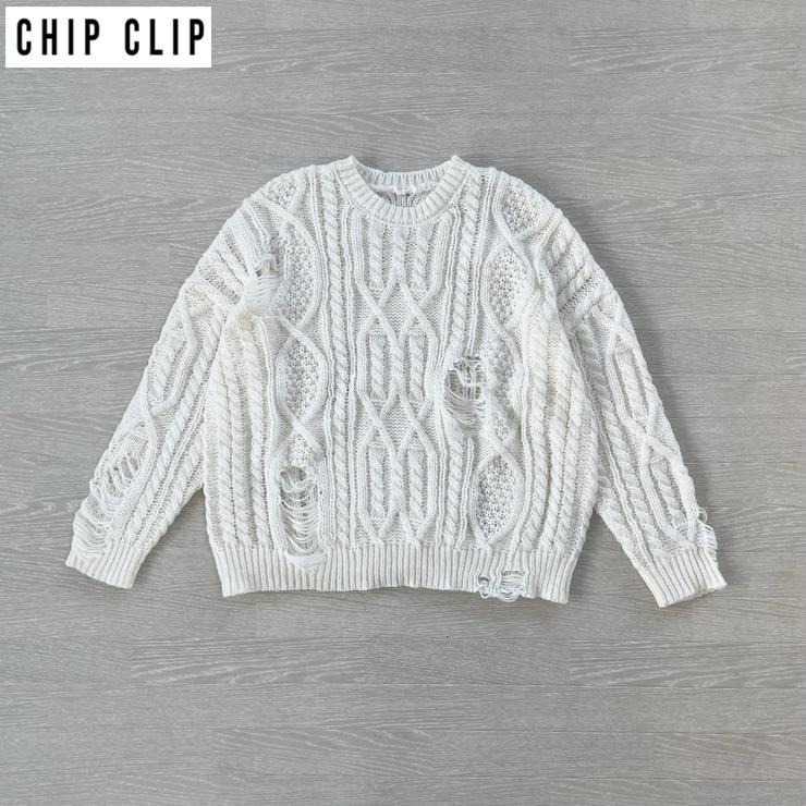 レディース ダメージニットプルオーバー(CHIP CLIP×はる)