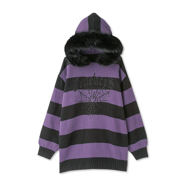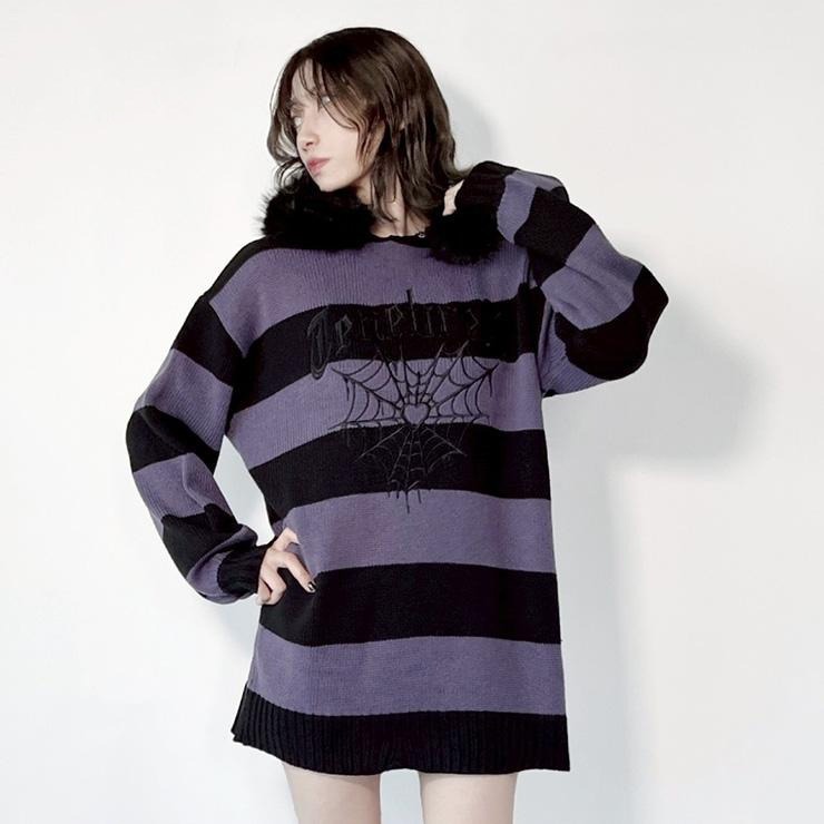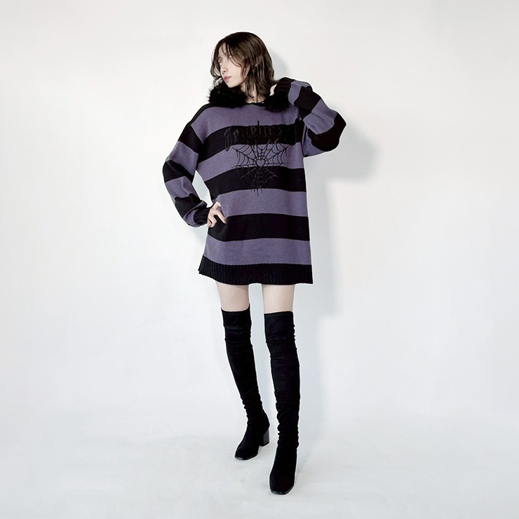 フロントに蜘蛛の巣刺しゅうモチーフが大胆にあしらわれ、オーバーサイズでワンピっぽくも着れちゃうサイズ感です。