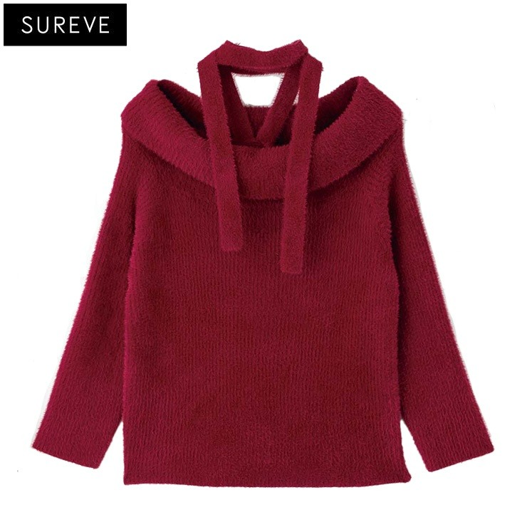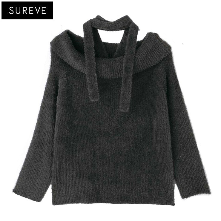 レディース チョーカー付シャギーニットプルオーバー(SUREVE)