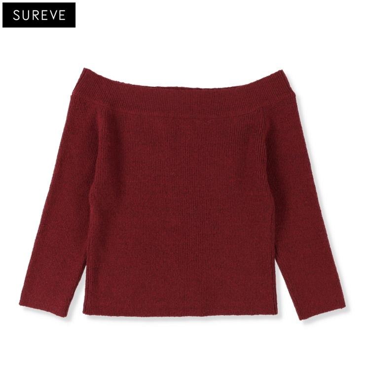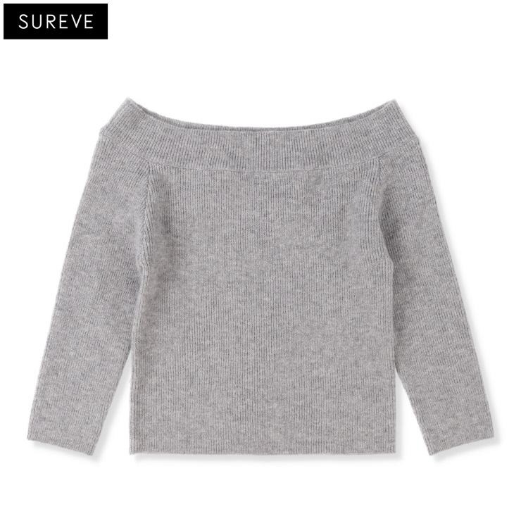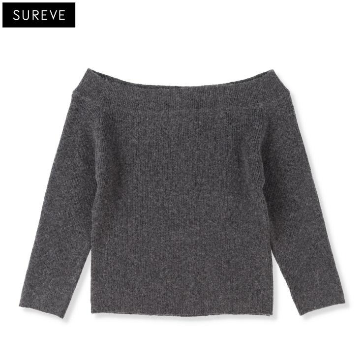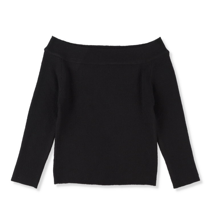 すっきりとしたシルエットで華奢見えが叶うオフショルニット。