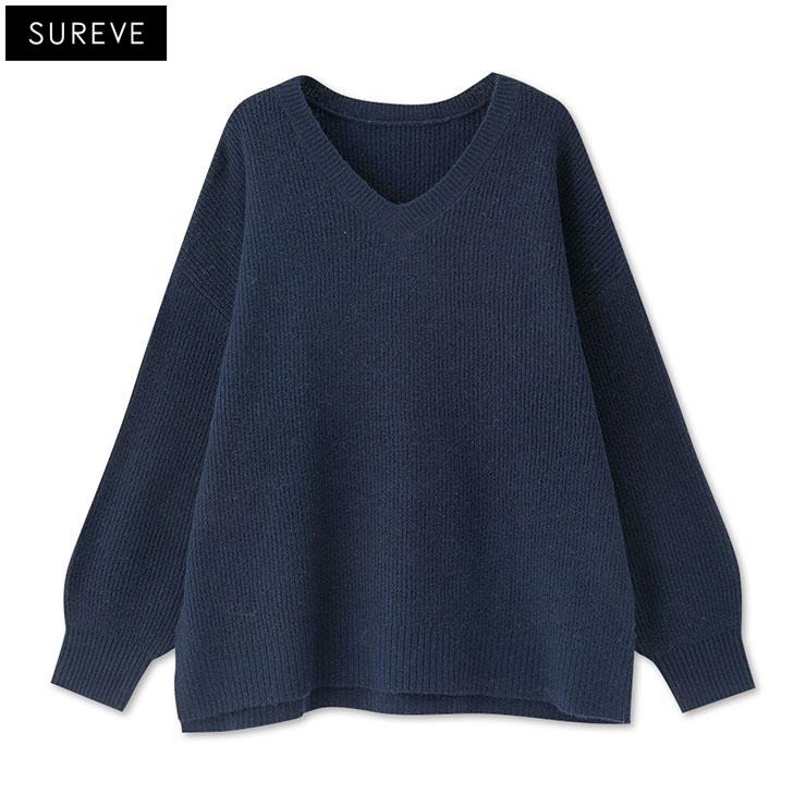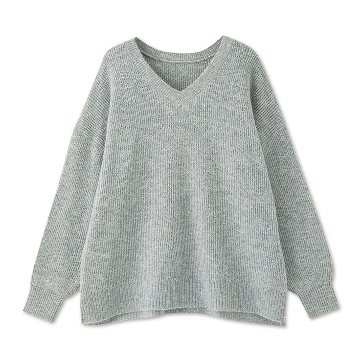 シンプルながら抜け感のあるVネックニットプルオーバー。
