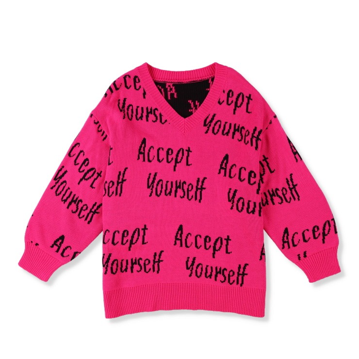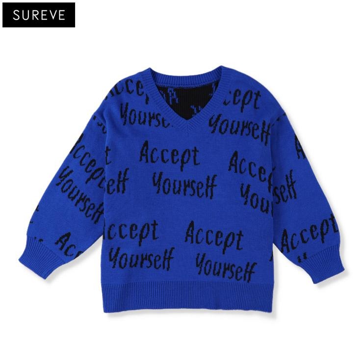 手書き風ロゴとパキっとカラーが映えるニットプルオーバー。